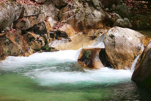 ここの渓谷は、巨石がところどころに点在し、滝が多く、