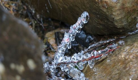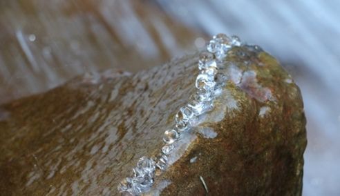 水しぶきが凍っています。