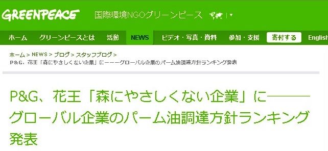 特定非営利活動法人 アジア太平洋資料センター国際環境NGOグリーンピースは、パーム油に対する大手企業の姿勢を評価しています。