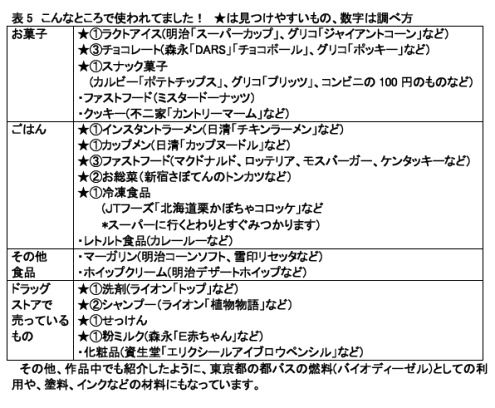 次の表は、身近なパーム油使用の一例です。