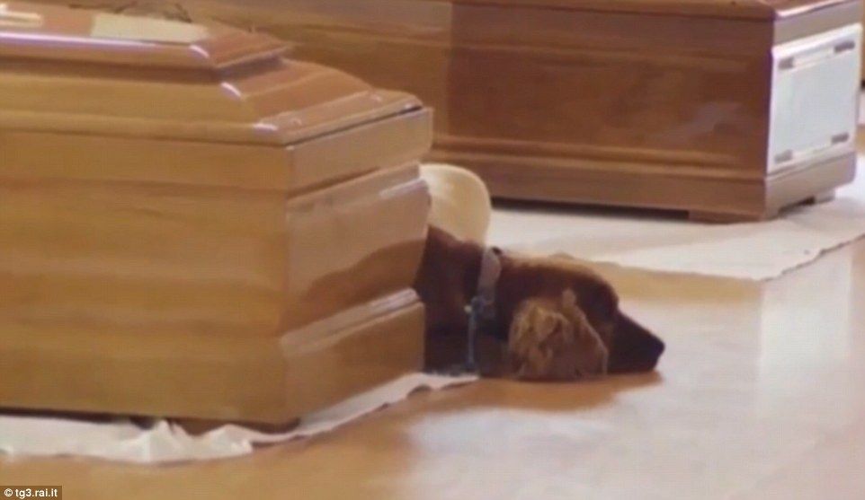 飼い主の棺から離れない犬がいました。