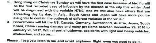 飛行機での心臓発作を告げる手紙の中でも