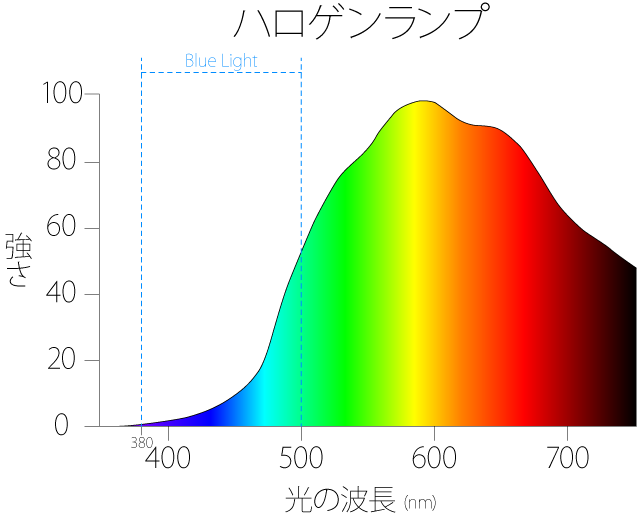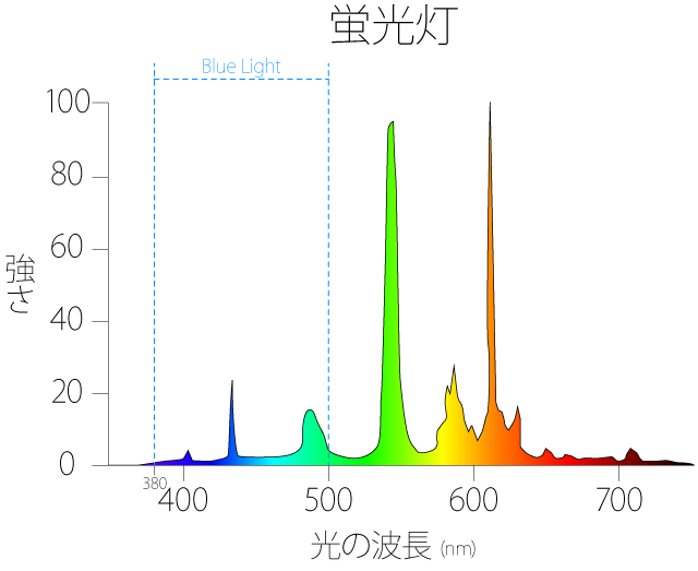 圧倒的にブルーライトの量が多いことが明らかです。