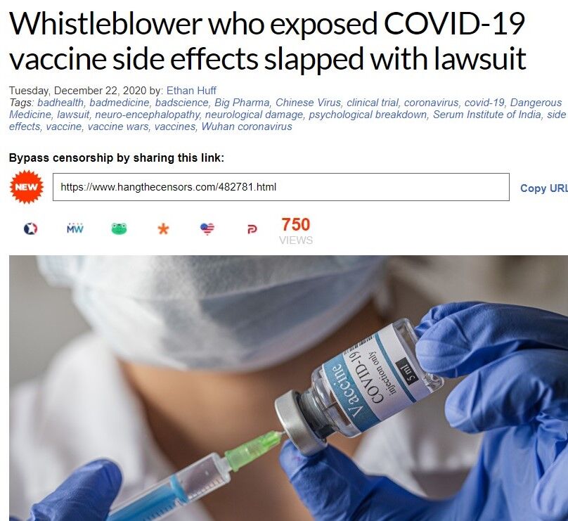 naturalnews.com孫「枠珍の副反応が出た人が、それを発信したら訴えられてしまったね。」