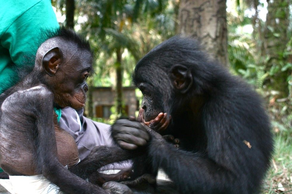保護されたボノボの孤児が野生に戻れることを、