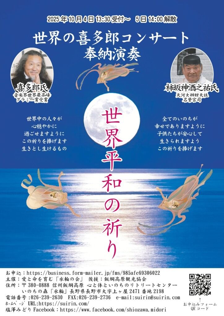 世界的な活躍している喜多郎氏と天河大辨財天社名誉宮司柿坂神酒之祐氏