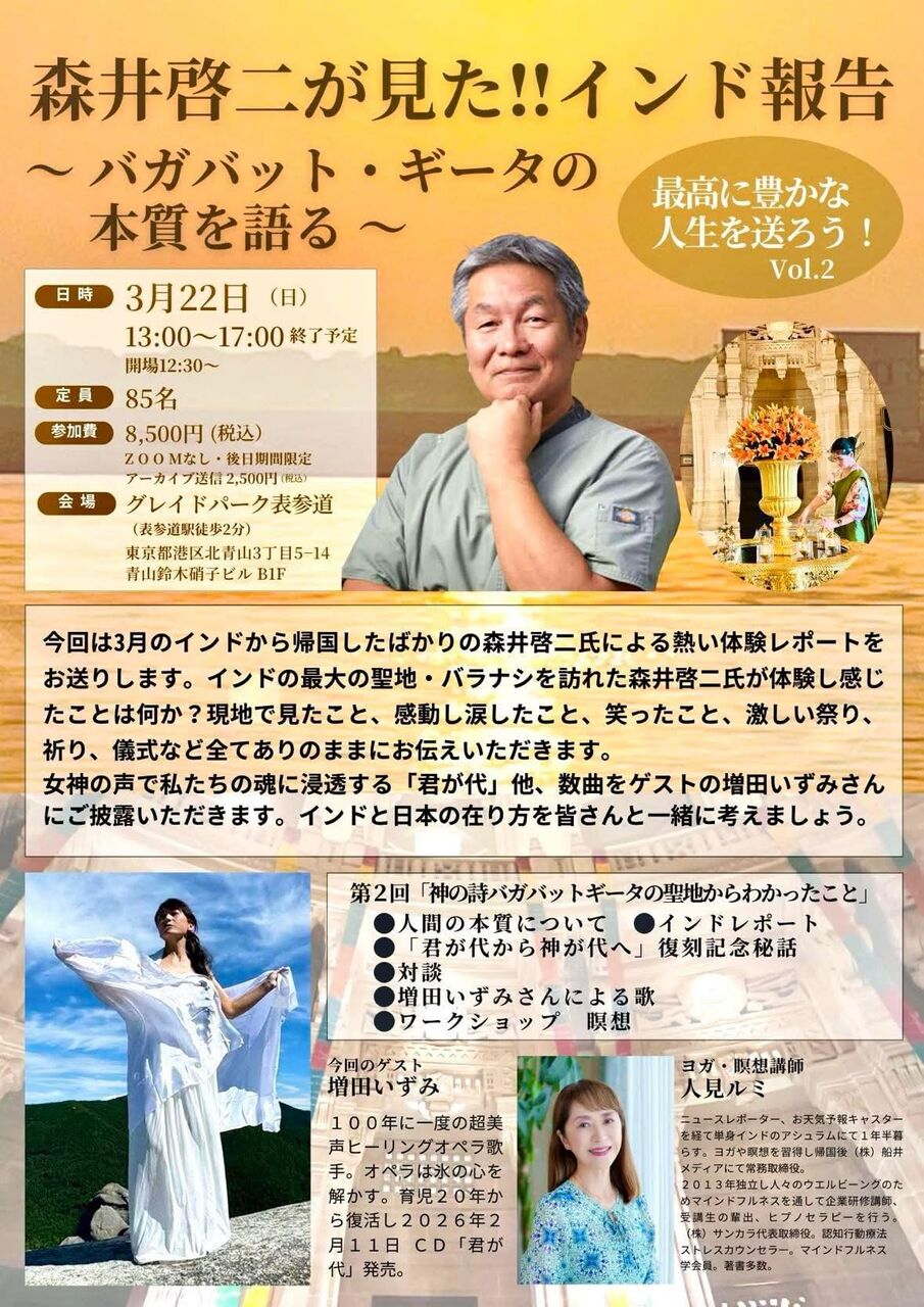 2026年01月29日 3月22日の講演会&ヨガワークのご案内 3月22日の講演会&ヨガワークのご案内です。前回も大盛況だったセミナー「最高に豊かな人生を送ろう!」第2回目です。詳細はこちら100年に一人の歌声増田いずみさんの生歌も聴けます。詳細&お申し込みはこちら今日もありがとうございます。ブログランキング参加しています。応援クリックお願いします。人気ブログランキング カテゴリなしの他の記事 < 前の記事次の記事 > コメント コメントフォーム 名前 コメント 評価する リセット リセット 顔 星 投稿する 情報を記憶